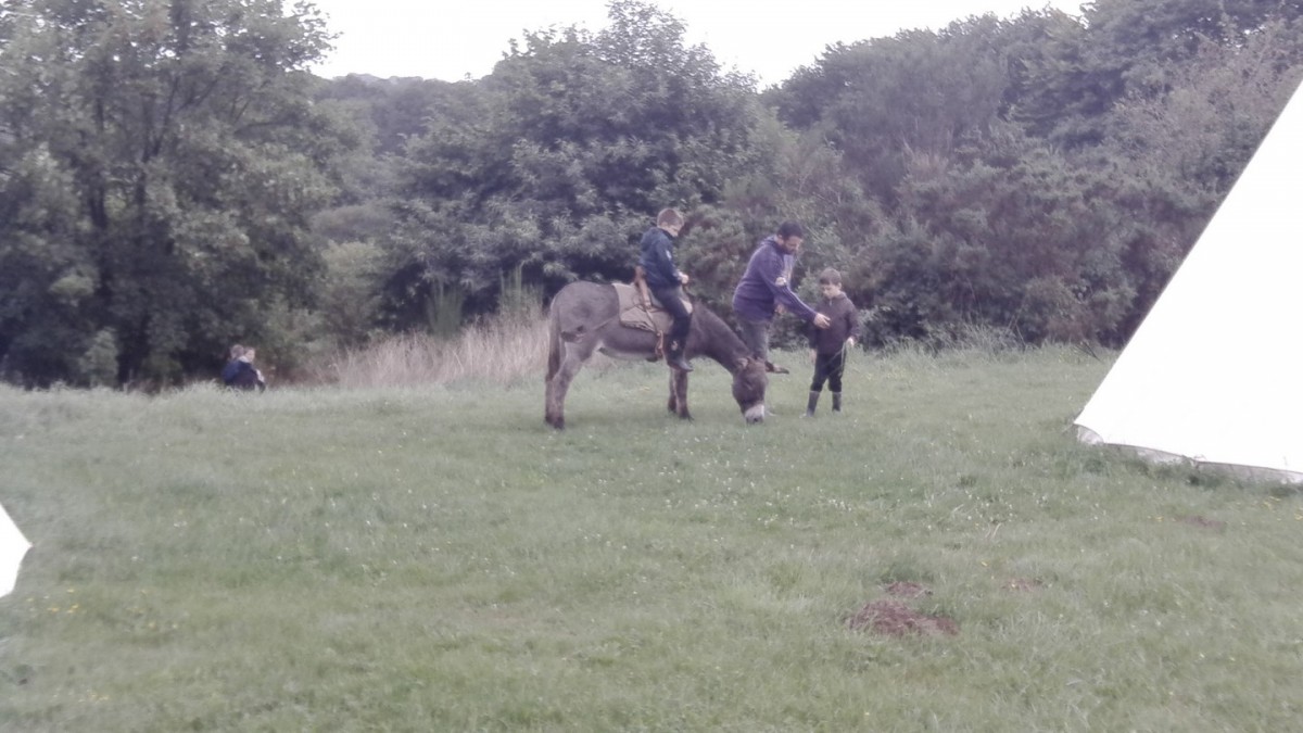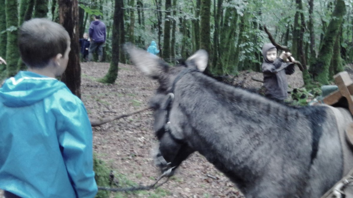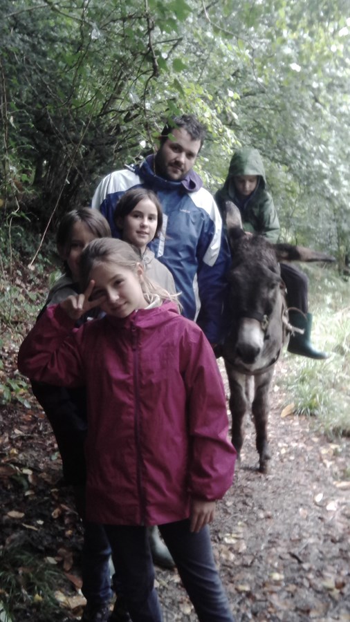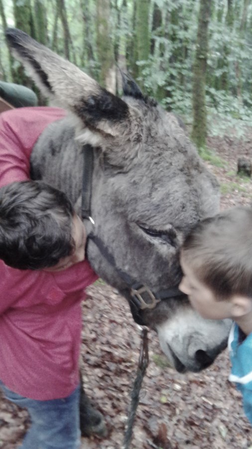La pluie n’a pas réussi à décourager les Aventuriers Buissonniers qui sont partis à la rencontre de l’âne Bibi, ravi de partager ce bon moment, notamment la dégustation de mûres !!!