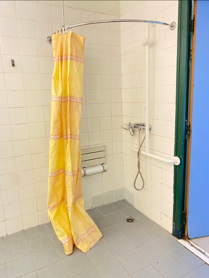 Les chambres adaptées pour l’accueil des personnes à mobilité réduite ont une salle de douche adaptée.